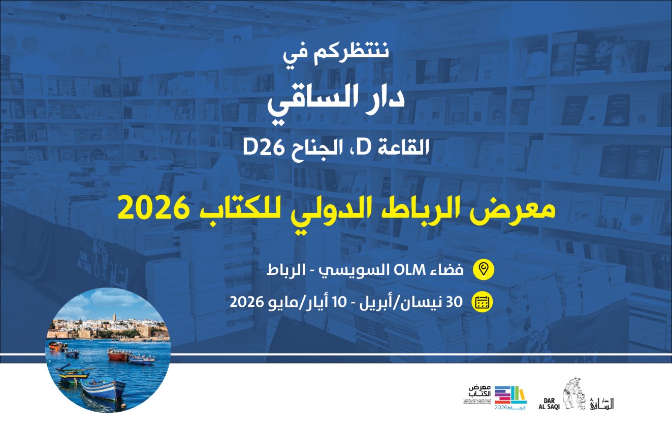 إصداراتنا متوفرة في القاعة D، جناح دار الساقي D26.